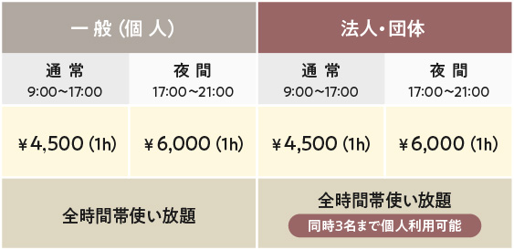 個人から企業・団体様まで、幅広いニーズに応じた柔軟な使い方が可能です。