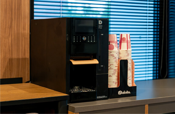 コーヒースペースも併設しており、リラックスしながら作業や会話を楽しめます。