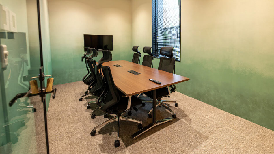 1Fソシオラウンジ内に位置し、少人数でのミーティングや商談に適した落ち着いた空間です。
